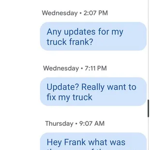 Rough start with communication, but we were able to get things taken care of. They reached out after I posted something else and tried to make it right. Car was done in a decent amount of time.