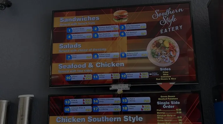 Husband likes to eat here on work trips. Likes the Philly cheesesteak. Place is clean. Lots of choices including fish, shrimp, chicken...There is a small credit card surcharge.
