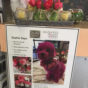 Sweet local shop in Utica Square with one of the most ultimate shop dogs on the planet? Count me in x's 1,000,000! I ran in to get some balloons filled for an event. There aren't too many places in town that have helium and get assist you instantly so I was thankful for the ease of completing this task!Walking in, my mister baby and I were greeted by a pink (maybe 5 pound) dog! The sweet pup was pink in honor of breast cancer awareness. This hits home for me and seeing these gestures of hope and awareness give me so much joy. There are pre-made arrangements and gifts to grab in the store and special orders can also be made. Can't wait to bop in again to play with the pink pup and have an excuse to get some flowers.