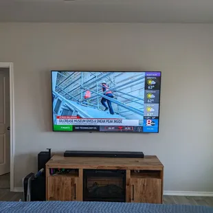 Absolutely amazing work man. This guy did an awesome job mounting our TV and it looks fantastic. We love the way it looks and how clean it makes everything look too. Can't say enough amazing things about how amazing this looks and how much we love the results. Thank you so much. We have your card on our fridge for any future work we need.