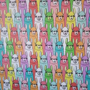 a row of llamas wearing bandanas