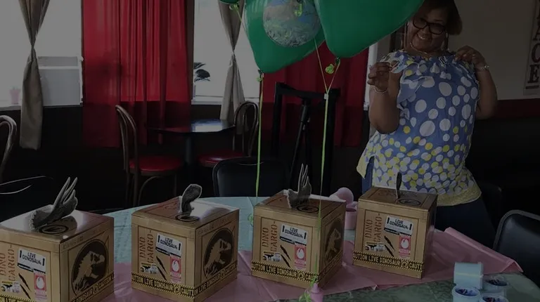 Decorations and granddaughter at the gender reveal