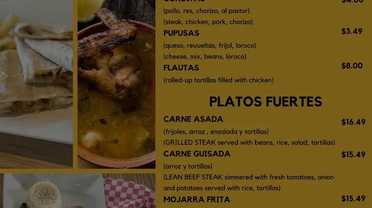 Cheese Pupusas y tacos asada y pollo arros y frioles