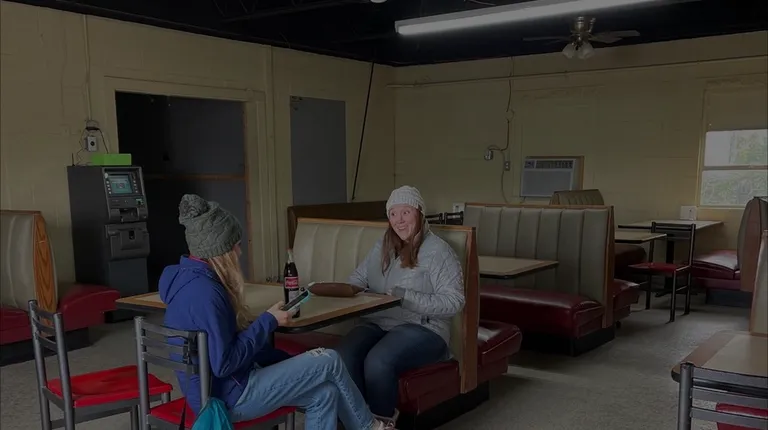 On the left is the building you sit in and on the right, you order your food.