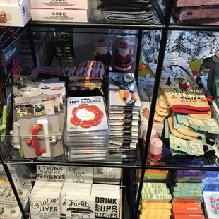 This is a fun store with all kinds of random, fun stuff that is great for gifts. This is my go-to place for hilarious cards you can't always find elsewhere. With that being said, I have to tell my 9 year old to not look at the card section as we pass by it as there are plenty of raunchy, just plain bad taste cards too, unfortunately. They've recently added some clothes; which just seems out of place to me. There is a kids section in the back. From doormats to travel bags and everything in between, there is bound to be something for everyone. Now if they would just get rid of the raunchy cards and gifts...but that's just me..check them out for yourself, it's sure to be a fun visit. Oh and my son wants me to add that there is good fidget spinners there