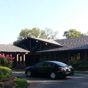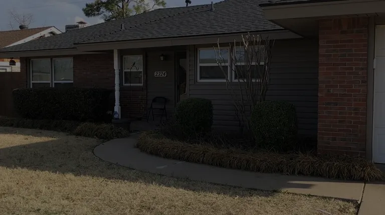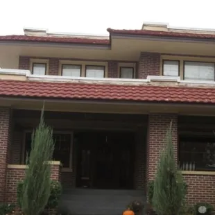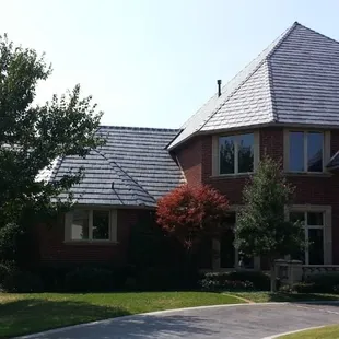 a brick house with a garage