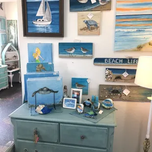 I had no idea this place was even here! Today, while roaming around the ViBe district looking for murals, I saw a tent outside in the side parking area with sale items underneath and the side doors flung wide open to welcome visitors into this charming shop with loads of items by local artists most beach themed and mermaid inspired. This is a well-kept retail and consignment shop showcasing local artists.Prices were very reasonable as I saw a few lamps with sea glass and seashells for about $40. There are decor items and some furniture items inside painted in chalky blues and whites and greens. There is a glass jewelry display counter near the main entry as well as small items and accessories throughout such as lotions, soaps, jewelry, coasters, and art for your walls.It's fairly large inside as it's the entire yellow painted brick building with about 4-5 small rooms filled with little creative goodies. A friendly lady greeted us and made small talk while we browsed. This is a great place to find some beach-themed decor for your home, take home some souvenirs if you're only visiting, or come if you're a local and find gifts for friends at special occasions.