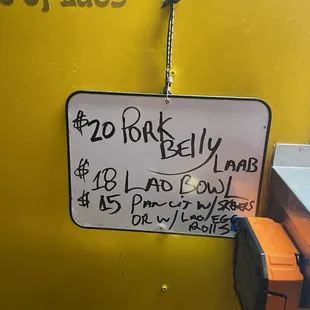 I tried the Pork Belly Laab today...OMG--the best! It's crispy pork belly that is ooooh so good! The fresh cucumbers are the perfect side & the serving is massive too! Totally worth it!