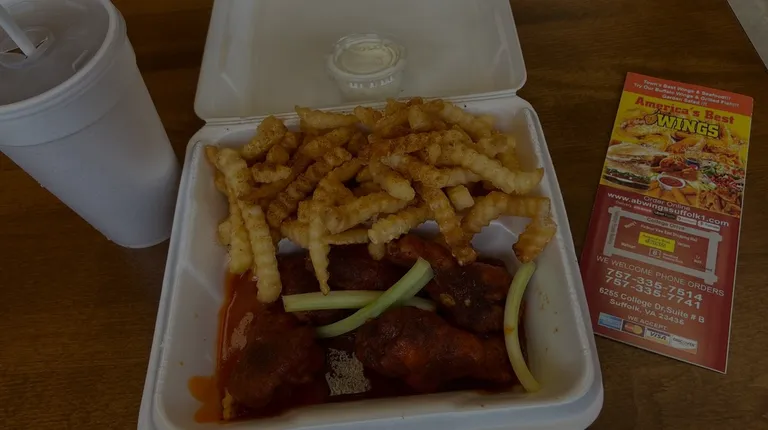 Picked up wings to-go- selected We decided on America's Best Wings to go because they offered an impressive variety of flavor options at reasonable 5 piece & 10 piece portions- also allowing for sauce on the side without up-charging. We chose: plain wings with buffalo sauce on the side, moon dust (since they were out of rosemary), and hot lemon pepper-The hot lemon pepper was more like a thermonuclear sauce, and less lemon pepper boldness- I loved the hot heat, but wish there was more of a lemony zest tasteThe moon dust was not as rosemary as they claimed, but had a nice mesquite dry rub salty but savory steak quality to itThe plain were delicious without dunking them in the buffalo but I rather enjoyed their base buffalo sauce- very creamy flavorThe wings were the perfect blend of crunchy outside juicy inside- thick pieces of meat- nice sizedWould frequent if we lived in the area & run through all the sauces