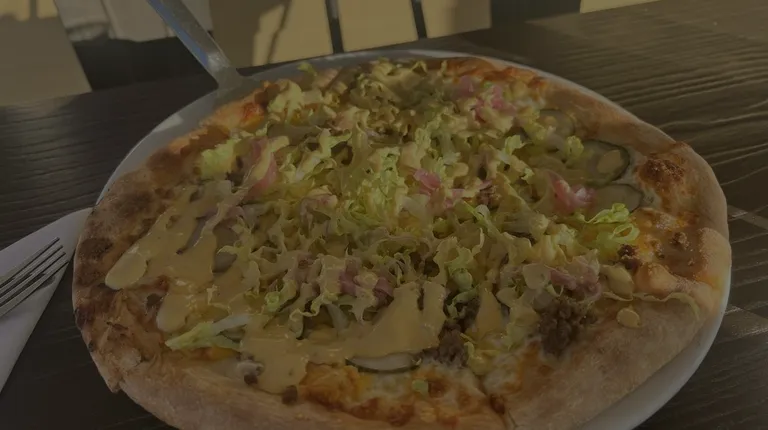 Food:The food was very tasty. I ordered the In-N-Out pizza, which is a take on a big Mac style pizza. Very tasty. The undercarriage of the crust was excellent. Crispy but not burnt. The toppings were fresh and definitely made with skill. Really liked it the food I give a strong 4 stars .Service:The service was good, but was very slow. Our group sat outside on the front porch because it was a mild evening in January. Took a while to get our food came out staggered. Our party was seven. Took a while to get the check could tell the waitress was trying her best. But I will give them the benefit of the doubt as they are a new location and trying to figure things out. I will give their service 3 stars. And expect it to be better in a few months. Definitely wouldn't keep me from coming back. Ambiance:This place is cool, seems like a really neat pizza place. Good aesthetics very clean the bathroom and the establishment are well kept. We sat on the front porch and those fixtures, tables and chairs, etc. seemed brand new. I would like to come back on a Regular visit and be inside for dining. I will give the ambience a 3.5.Wrap Up:All in all I think Amicis is a good place. I will come here again really liked it and I think after they work the kinks out, this place will rock! Good luck Amicis! I'm rooting for you!