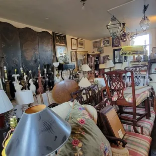 Large store with 2 big decorative mirrors on the building's exterior, perched above their dedicated parking lot. Inside contains a wide variety of items from eclectic periods and regions. As a novice, I was honestly overwhelmed by the amount of stuff, everywhere. My co-worker and I weren't greeted but we later learned the owner, Lana, was present but under the weather without a voice. Her team was occupied with what appeared to be a regular customer.After slow walking throughout the many rooms leading into even more rooms, we didn't spot any antique compasses, the grail of that day's quest. As we headed toward the exit, an employee asked if we needed help finding anything. When we mentioned the compass, Lana, in a barely audible voice, said "I can get it." She took contact info, shook my co-worker's hand and vowed to call when secured. This likely means she has even more stock in storage; understandably, having too many (more than 2) objects of the same type tips the bargaining leverage into the buyer's favor.