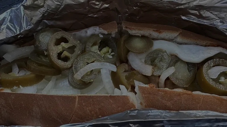 Chicken Parmigiana Sub with onions and jalapeños