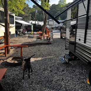 No grass it individual sites. Dogs have to stand on rocks.
