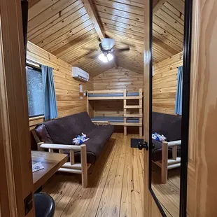 Ray, Rachel and Cayden were great!! Very nice and accommodating individuals. I love that they give free donuts, coffee and icecream during your stay. Sometimes snow comes and other goodies as well! They have the list of their activities listed in the bathrooms and around the campground. The little wooden cabins are so cute! Perfect for a family of 2-3. Or even 4-5 if you are okay with bunk beds! There's a picnic table, fire pit, and grill in each space. We were even able to fit our pack n play for the baby in the room with the queen bed, which was perfect! The bathrooms were clean and well maintained. There's a game room, a general store, a park for the kiddos, and a pool! The campgrounds is only about 4 acres, so it's more intimate which I loved! We will definitely be back and may even try out one of their bigger cabins! If you haven't checked them out yet, head on over, you won't regret it.