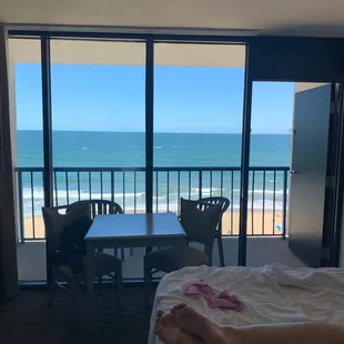 I'm here with my mom for a few days and I don't have a lot of negative things to say. Our room is clean and plenty big enough for the two of us. Beautiful view from the balcony, location can't be beat. I will say, the parking garage is teeny tiny and just making the 90 degree turn at the top of the ramp is nearly impossible- and I'm only driving a Highlander, nothing huge. Toiletries are lacking- it's possible they forgot to stock them but all we had is one little bottle of shampoo and two bars of face soap. No body wash or regular soap, no conditioner, no lotion. I was glad I brought my own. Not a bad price for a stay right on the beach. Definitely grab breakfast at the diner across the street!