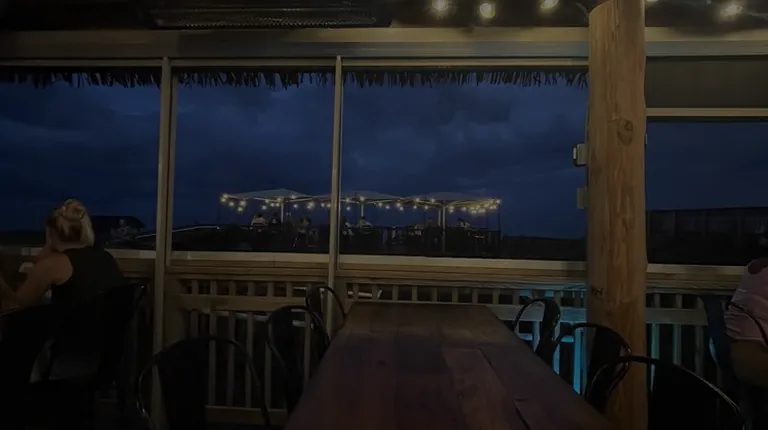 I can't offer any information about the food, because we only went there for drinks. That being said, there's a nice place. The indoor tiki bar is exactly what you think it should be. Nice crowd, good buzz, plenty of seats, several TVs.The outdoor portion of the tiki bar is nice, but could be so much better. They have several tables and some lounge chairs set up right above the beach, but they don't pipe out any music from inside. No TVs or anything like that. And you can only sit at a table if you're ordering food . I don't know, just seems like a miss to me.
