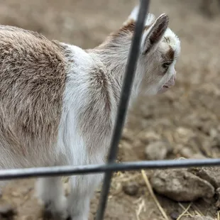 a goat behind a fence