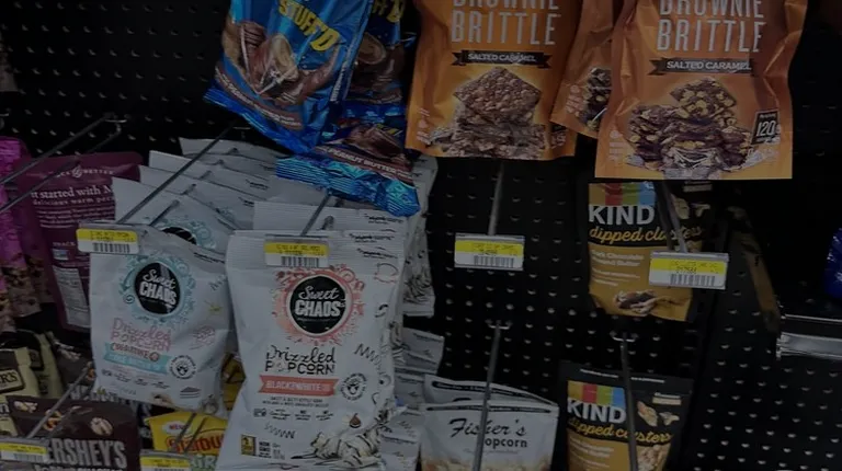 a shelf of cookies and candy