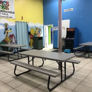 Your eating room is directly connected to the Private Bounce Zone- very private and quiet and nobody else will be jumping with your party.