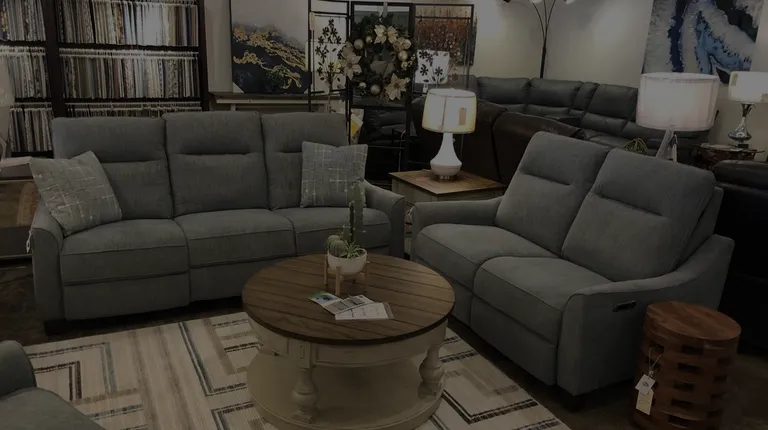A reclining living room set by Flexsteel. We offer customization of almost all upholstery pieces on our floor.