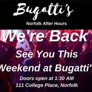 TGIF... let's get this party started at Bugatti's! #bugattisnorfolk #danceclub #nightclub #afterhoursclub #latenightclub #DJ