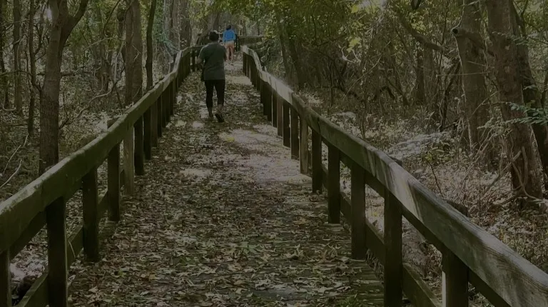 The board walk that leads to the left