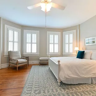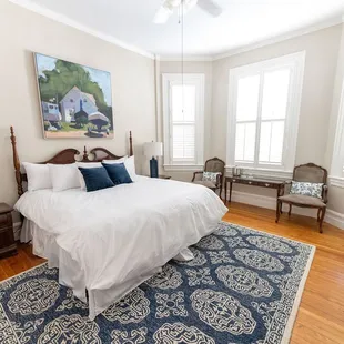 Beautiful bed and breakfast. Great king sized bed with nice linens and pillows. The adjoining bath was on par for an older home with great shower pressure. Excellent breakfast prepared each day in the dining room. Good parking. Good location. Walkable to downtown waterfront.