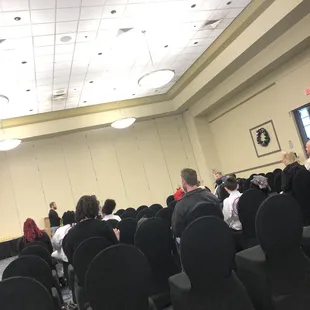 Definitely a great place for a large even! In a easy good location in greenbrier. Lots of parking. Bathrooms on both sides. Good size and clean. I noticed other rooms that were being used for a party. It was nice we didn't even run into that group. And parking was still not an issue. We were in the large main room. It had lots of room for space and chairs. They had a stage up front with rows and rows of chairs with still room to move and walk around. With some good lighting as well. Everyone seemed to enjoy the food they provided. Over all it was a perfect place for a ceremony that we attend with at least 200 people.