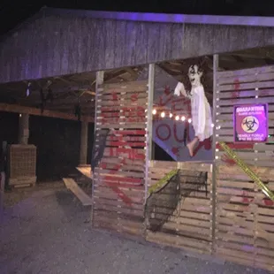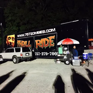Came here for the second time for the "Zombie Thrill Ride" but it's sad to say that I think I'll take a hard pass on this next time. Last year, I came here the night before Halloween so the lines were incredibly long. Came here using a Groupon discount so I didn't mind it much. The large crowd was lively and so were the workers. The ride itself went by pretty fast but half way through the ride, my paintball gun jammed. Came here again this year for the Zombie thrill ride. This time my group and I decided to come here on a night where the lines weren't so long. We also used Groupon again so the price wasn't so bad. However, despite the short line ... the wait seemed to go on FOREVER. I think this was due to only having one "hayride" open. It was also a lot less lively and there was honestly no "thrill" to the ride and the ride itself only took about 10 minutes or so. On the plus side ... my gun did not jam but for the wait and money ... I don't think the zombie thrill ride was worth it.Gotta still check this place out during normal hours :)
