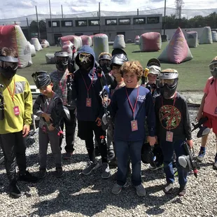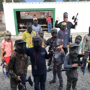 We went here for a birthday party. Granted it was raining and cold...but the kids didn't care. I wish they had some sort of a fire pit for the winter days. It was about 10 kids in the party. All was going well HOWEVER, their masks kept fogging up...so in return instead of telling the children not to shoot if they couldn't see...a child inadvertently just starting shooting all around and my son got hit in the back of his head and neck, which caused a lot of pain. Now this was a party with 9-10 year olds so I understand how it could have happened. With that being said...if they have a party for younger children...I really think they should have full helmets to avoid injuries such as this one. I signed a waiver but I think just knowing the age group...better equipment should have been offered. Not to mention they forgot to get the cake for his friends birthday party but offered candy instead which the kids loved. Overall, it was ok and the kids had fun...but I really wouldn't recommend coming here if it's raining with children. And although they say they play rain or shine...one of the hosts said the reasons some of the kids guns were getting jammed and not working...was due to the rain . If you have children here that are younger than 11...I wouldn't recommend it unless they have full head gear. I won't be back.