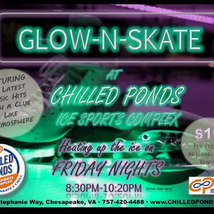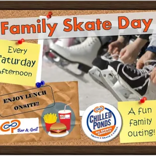 What I love about Chilled Ponds is that there are two rinks, so you can go ice skating almost any day or anytime. They have different times so that different types of skaters can get what they want from their time on the ice. If you go to the free skate, expect to see a lot of people who can't skate well. They are a bit erratic, cling to the sides, and aren't paying a lot of attention to anyone else. There are also a lot of kids with those big bumper thingys.Chilled Ponds has a restaurant on site, so you can get a drink or a bite to eat if you get hungry.The bathrooms have tiny stalls with wide gaps in the door where anyone can watch you doing your business. So, I'd say it needs an update. Still, it has a family friendly, welcoming vibe. It's a good place to go to try out ice skating.