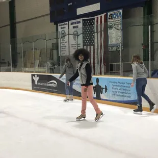 Went for public skating on a Saturday and was disappointed with our experience. The place seemed like it was run by two teenagers- one at the front desk and one at the skate rental counter. They were not especially friendly or professional. They don't give you receipts for your credit card purchase (so I hope I was charged correctly) and there is no system in place from stopping anyone from just walking in and getting skates and going to the ice without paying. We needed to get a skating walker to help with skating and after waiting in line at the rental desk was told you had to pay $10 at the front desk and then come back and wait in line. Again, no system in place for them to know I actually paid for the skating walker. Anyone could have just said they paid. Once we were on the ice there was no staff in sight during the entire 3 hour skating session. I expected someone working there would be skating with us to regulate the teens who were smashing skating walkers into each other and skating recklessly. At one point someone spilled A LOT of coffee right at the entrance to the ice. I went to the front where those two teens were now sitting together and asked for someone to come mop it up and the help never came. The place is overall dirty and just mismanaged (or not managed at all). The only positive was the snack bar!!