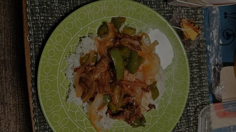 chicken and rice in a styrofoam container