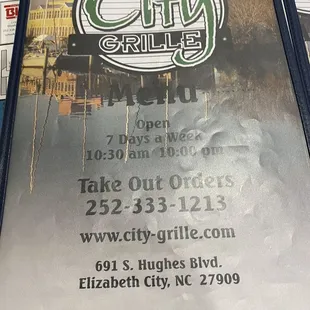 the menu for the restaurant