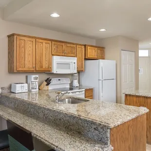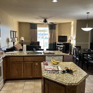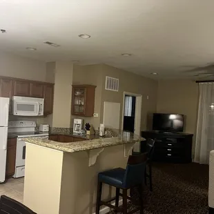 Recently spent a few nights in a three bedroom suite and I would say it's a wonderful place to stay.In the three bedroom suite everything is included- washer/dryer- dishwasher- plates/dishes everything you need in a kitchen Restaurants/shopping is only a few minutes drive away so you can cook dinner if you wishMany activities are on the hotel grounds such as a full mini golf course which isn't anything fancy but it's still fun, there is indoor pool for the times it's too cold outside, and a small fitness room.A huge plus if you are staying with friends is that everyone gets their own room key so everyone can do their own thing.