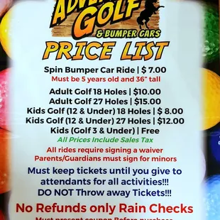 27 holes for $15! Its great and the holes are very challenging and fun for all! I highly recommend taking your time and enjoying Corolla Adventure Golf