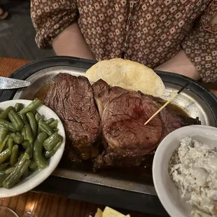 Took my wife here for her b day dinner. I had a queen cut prime rib, my sister had king cut prime rib, my wife had the Delmonico steak and my brother had the meat loaf. The food was delicious and our server was awesome. The cherry cobbler was very good.