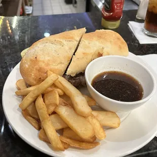 French dip with steak fries