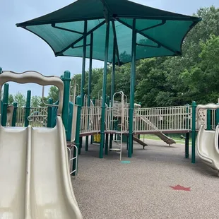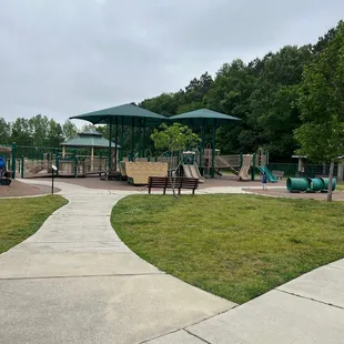 We love this park! It's a good size! Has two separate parks in front and the back. Near the fields is a better one for little kids. It's also perfect for the summer the canopies help keep the equipment from being so hot. They also have a paved walking path. A day park and restrooms