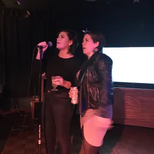 Disorganized and lacking someone knowledgeable with working the soundboard and properly adjusting levels. Unable to hear yourself in the monitor (either not turned on, or very low). No rotation, people are just called in the order they put songs in, so if someone sings and quickly submits a new song, they end up getting called to sing for a second time, before other people have even sang their first song. Not sure if this was someone's first night, but it was pretty rough if who we saw was a regular KJ. Didn't try the food, but the drinks were reasonable.