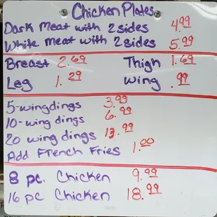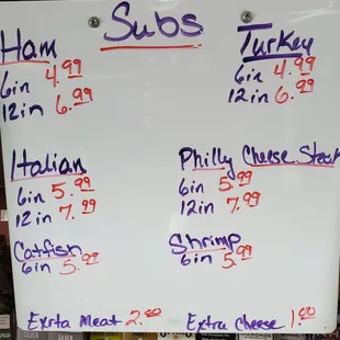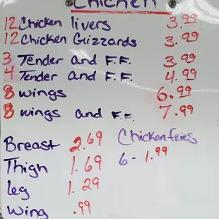a whiteboard with a price list on it