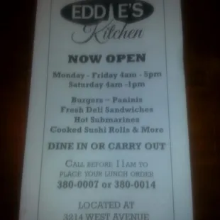 the menu for the restaurant