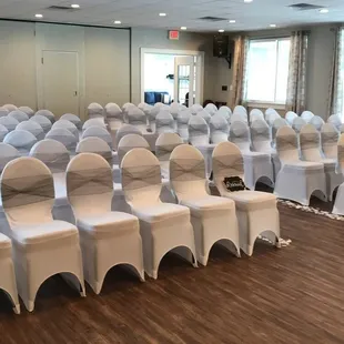 Our wedding was at Elizabeth Manor in July and everything was perfect! I was adamant about having the ceremony and reception in the same place because we had a lot of out-of-town guests and we didn't want them having to travel from the ceremony to the reception. Anne and her crew set the room up one way for the ceremony and then flipped the room right before cocktail hour to turn it into a beautiful reception space! The servers were quick when bringing dinner out and were accessible when we needed them. There is a beautiful outdoor area that overlooks the water, and it provided an amazing backdrop when we took pictures after the ceremony. The meal prices are unbeatable and every plate I saw was nearly cleared when my husband and I walked around to talk to our guests. Elizabeth Manor provided all of our linens, plates, and silverware. They also ordered our chair covers for us from their outside vendor. I loved how easy it was to contact Anne with my many questions in the months and weeks leading up to our ceremony; she always responded right away and her crew was at the venue all day of the wedding to help us set up. There are two large ladies/men's rooms where we were able to get ready before the ceremony, and they even have cabinets with locks for you to lock away your belongings if you want to keep them safe while you're getting married. People have asked me what I would have changed about our wedding day if I could. My answer is always: nothing! Everything was perfect on the happiest day of our lives.
