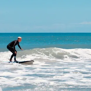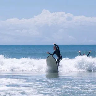 The folks at Farmdog surf school are amazing. I had the privilege of spending a week with them through First Descents which a cancer survivorship program earlier this spring. I wasn't sure what to expect and was nervous about wether or not I would be strong or brave enough to get up on a board. These people not only supported us physically by bringing us out into the water and giving us the push we needed, mentally by walking us through every step of what we should expect and also emotionally holding our hands through the whole transformational process. As a 40 year old mom of 2 I wasn't sure my teenage dream of surfing would ever come true. I'm so glad I took the chance and that my new Farmdog family were there to support me. I'll be bringing my whole family with me next time for sure. This is a real mom and pop family operation with a beautiful shop, very affordable prices and a whole lot of heart. If your considering lessons, looking for a place to rent equipment or just looking for a cool hat and some non toxic sunblock.... this is your place. And tell them Tagger said