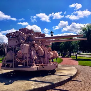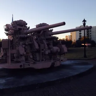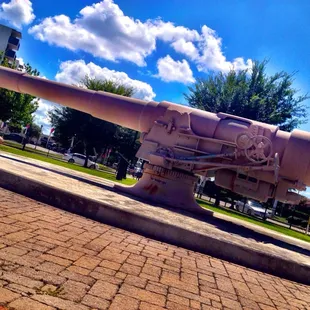 There are no bathrooms, no playground swing sets, this plot of land is more of a walkable history lesson with a couple informative signs & a few Naval warship items throughout. You've got some massive screws (props, propellers = screws), a pretty cool desert sand painted gun that we would expect to see on a destroyer & nice, clean & wide pathways to walk or ride thru the park on. It's a nice, clean & quiet with a few park benches to relax on & watch the sun setting behind the Naval Hospital. If you have base access, there's a big field in the back beyond the gym that you can really get a great view of the setting sun from, but if not, Fort Nelson Park will do.