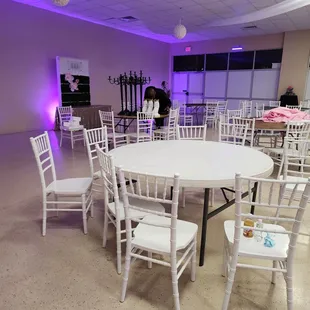I rented tables and chairs for my husband's surprise birthday party and they arrived on time. The pricing was also wonderful. The tables and chairs were in great condition, and it just added to the aesthetic I was going for. Gawain was really easy to work with and very responsive. Thank you so much for everything!