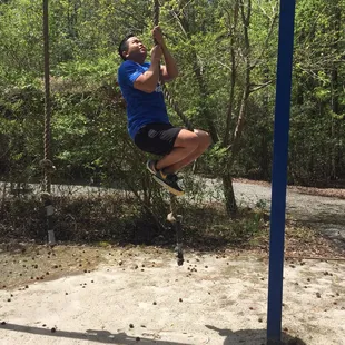 Girl Scout on the high ropes course at Camp Skimino
