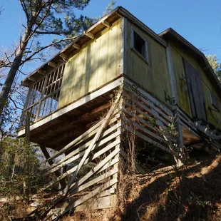 The trail to Goatman's hollow is on a sandy/dirt road. The walk is about 30 minutes(1 hour round-trip) in from the parking lot. There are residential homes along the road, so be aware of people driving. The actual Goatman's house (the yellow hunting lodge) has been torn down so we didn't see it. But we did enjoy the walk.