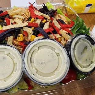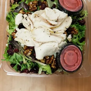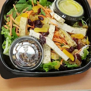 I work at the hospital and our department will often order here because they are nearby and can deliver to us. They have a good selection and the pricing is fair. The salads are good, but that's really it. They aren't spectacular and I can think of plenty of other places I'd prefer to get salad and sandwiches from. The chicken I've eaten from here is close to bland. Today, I had the Tuscan tofu salad; it should have had more tofu, the portion was small. There was a plethora of sweet components like dried fruits and candied walnuts. It was interesting for sure, but I don't think I'd have it again, as I've felt for everything I've had there. There were also two instances that they made some orders wrong. This restaurant isn't so bad, but I wouldn't particularly suggest it.