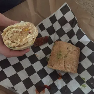 Catered box lunch provided by my job. The turkey pesto sandwich is great. Heath cookie is amazing